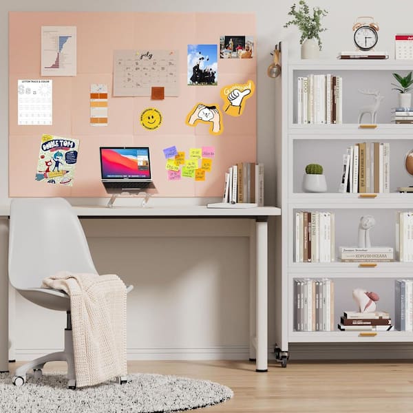 48 x 36 Rectangular Pink Felt Cork Board Tiles with Removable Adhesive Tabs and Push Pins for Office and Home Walls