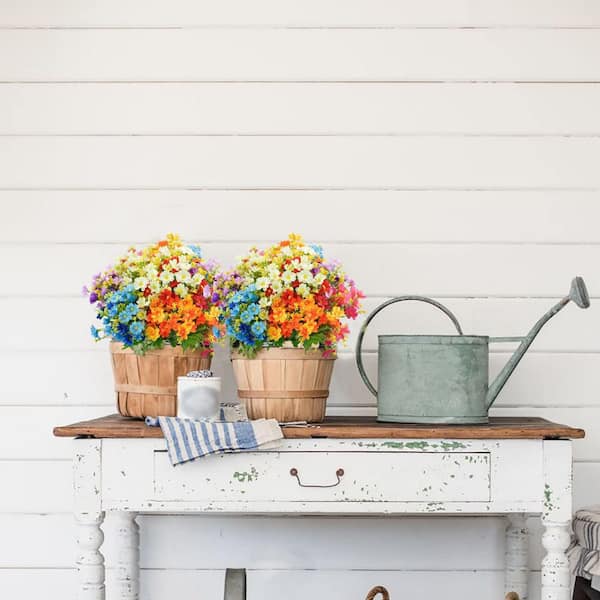 5.00" 6 Bundles Artificial Daisy Mums Flowers, Orange Yellow, Indoor/Outdoor UV Resistant