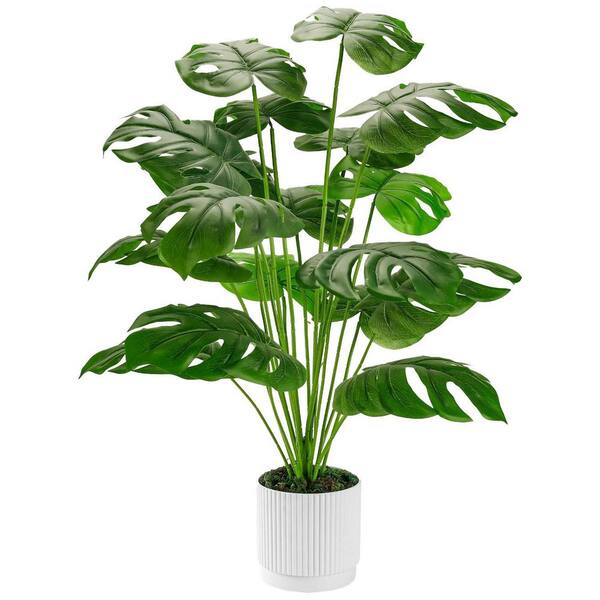 5.11 in. H Green Artificial Monstera Plant in White Pot for Indoor and Outdoor Decor