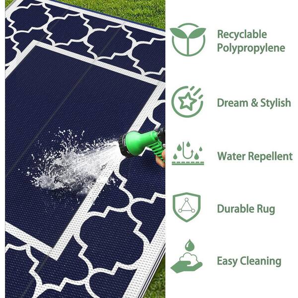 5 ft. x 8 ft. Outdoor Patio Rug Foldable Reversible Plastic Straw Area Rugs Mat in Navy Blue