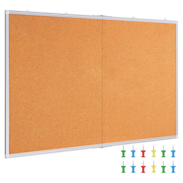 60 x 36 in. Rectangular Cork Board Aluminum Frame Foldable Wall Mounted for Office Home School Display