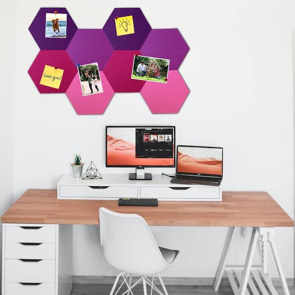 7.9 x 6.9 Inch Hexagon Cork Felt Board Tiles Gradual Purple Self Adhesive DIY Wall Decor for Office School Home
