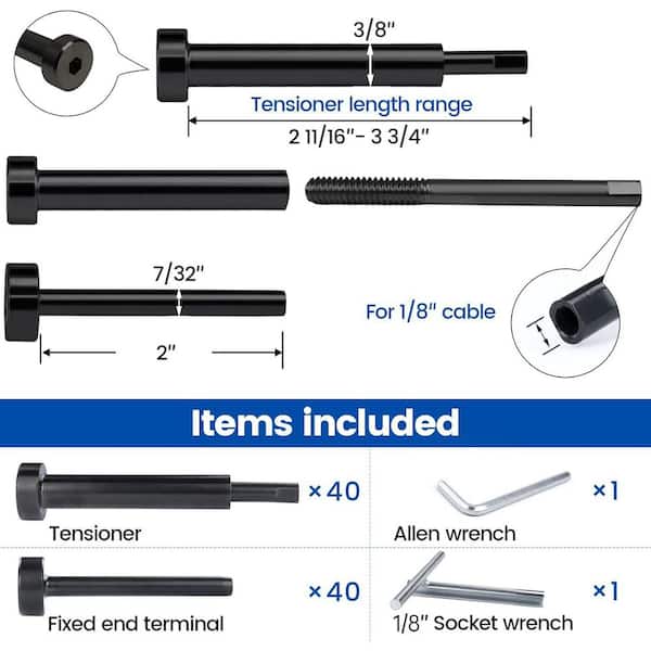 80 Pack .13 in. W Black Invisible Cable Railing Kit for 2 in. x 2 in. 4 in. x 4 in. Wood Metal Post T316 Stainless Steel