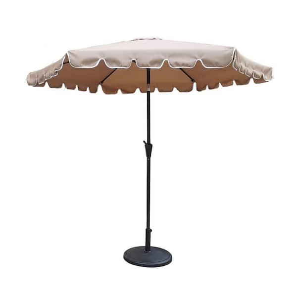 9 ft. Aluminum Crank and Tilt Patio Scalloped Umbrella Outdoor Market Umbrella With Carry Bag, Taupe