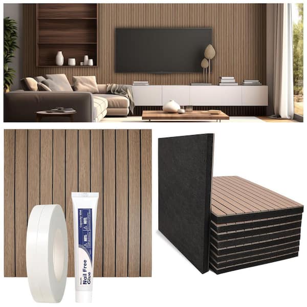 Acoustic 1/2 in. T 11.8 in. W x 0 ft. L Shiplap Decorative Wall Panels Finished MDF Board in Taupe 12-Pack