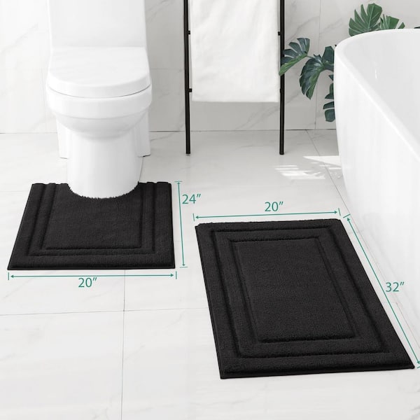 Bathroom Rugs Sets 2 Piece, Super Soft and Absorbent Non Slip Microfiber Machine Washable U-Shaped Toilet Mat in Black