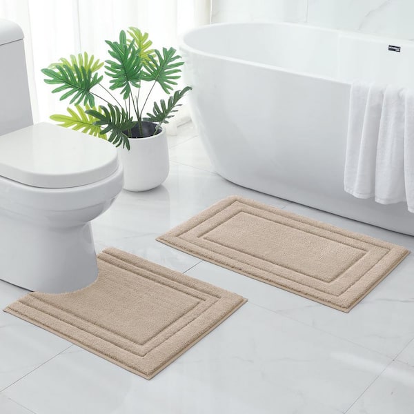 Bathroom Rugs Sets 2 Piece, Super Soft and Absorbent Non Slip Microfiber Machine Washable U-Shaped in Beige