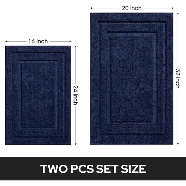 Bathroom Rugs Sets 2 Piece, Super Soft and Absorbent Non Slip Microfiber and Machine Washable Mat in Navy Blue