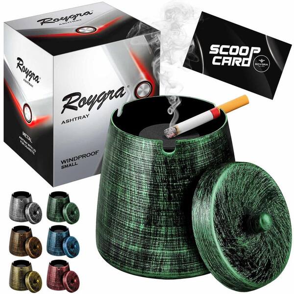 Classic Large Capacity 3.08 in. x 3.81 in. Green Metal Cigarette Ashtray with Lid