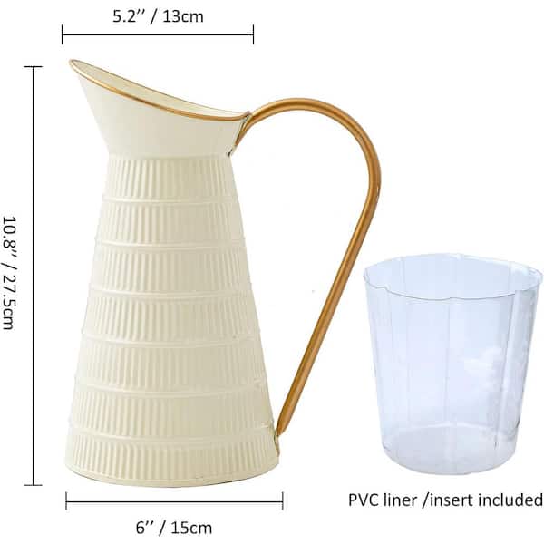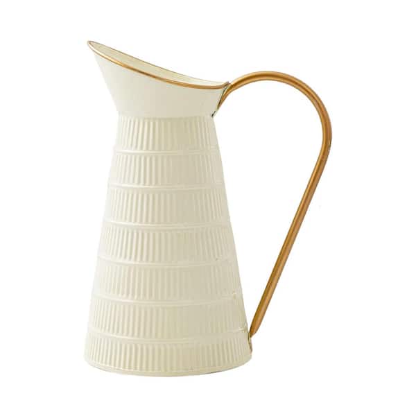 Elegant Cream/White Metal Pitcher Vase, Farmhouse Galvanized Flower Vase, Rustic Decorative Milk Jug for Home Decor