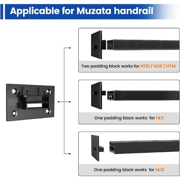 Flat Handrail Accessories 2 Pack Black Stainless Steel End Brackets Universal Wall Mount Base Support
