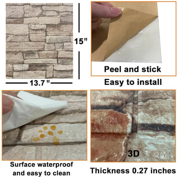 Gray 3D Brick Wall Panels Peel and Stick Self-Adhesive Faux Stone Wallpaper Foam Panels for Home Decor
