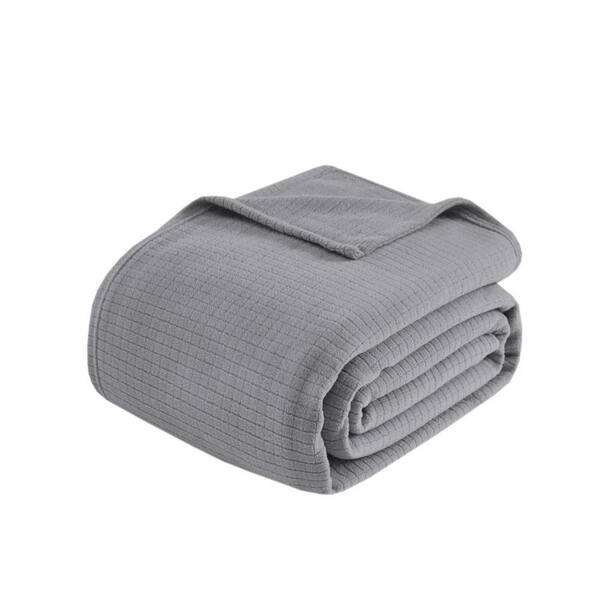 Gray Micro Fleece Full/Queen Blanket with Soft Anti-Pilling Grid Pattern, Lightweight and Machine Washable