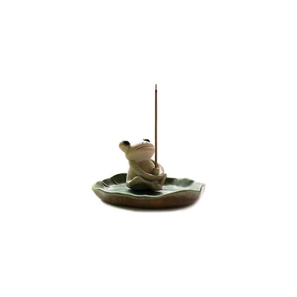 Handmade Ceramic Frog Incense Burner with Lotus Leaf Design