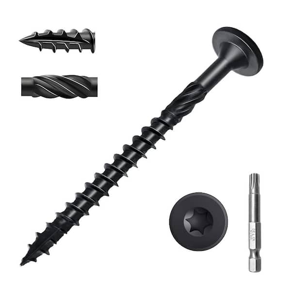 Heat-Treated Steel Black Rust Resistant Heavy Duty Structural Wood Screws (50-Pack)
