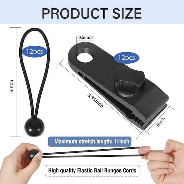 • Includes 12 heavy-duty lock grab clamps and 12 bungee cords