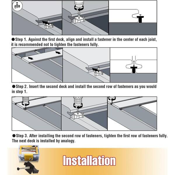High-Density Polymer Black Hidden Fasteners for Composite Decking with Stainless Steel Screws (90-Pack)