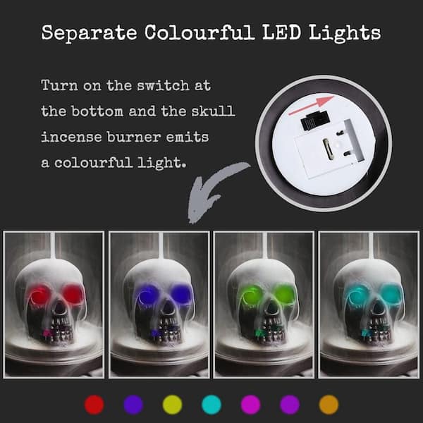 LED Ceramic Skull Incense Burner with Backflow Waterfall Effect and 15 Incense Cones