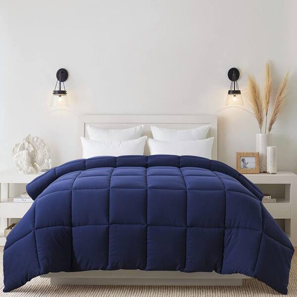 Light Warmth Blue/Grey Down Alternative Full Microfiber Comforter with Corner Tabs