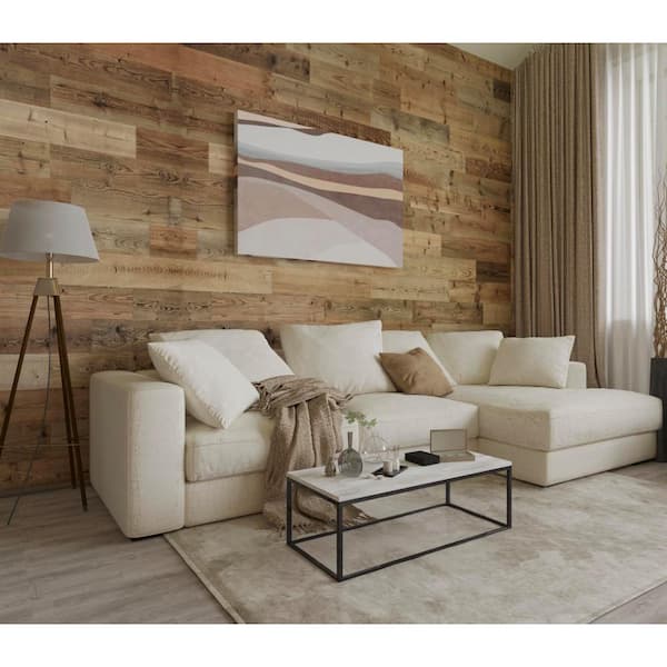 Natural 1/4 in T x 4 in. W x 2 ft. L Shiplap Pine Weathered Reclaimed Barn Wood Boards Planks in Brown 12-Pack