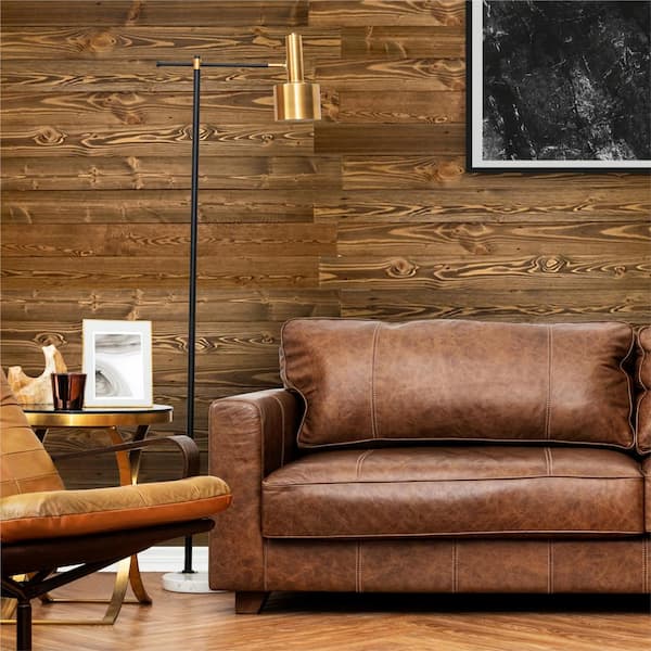 Natural 1/4 in T x 4 in. W x 2 ft. L Shiplap Pine Weathered Reclaimed Barn Wood Boards Planks in Chestnut 12-Pack