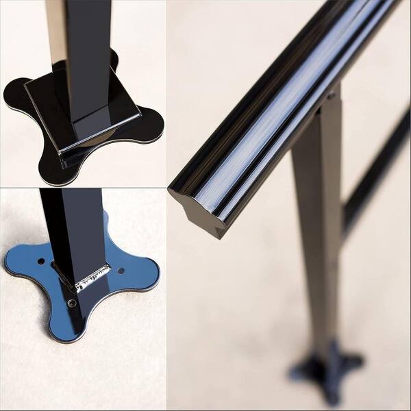Outdoor Metal Stair Handrail Kit Adjustable 4 Step Handrails Black Aluminum Iron Mirror Finish 44.9 x 34 Safety Railings