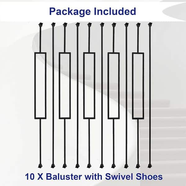 Rectangular Iron Balusters Stair Spindles Black with Swivel Shoes 44x1/2 for Interior Staircase 10-Pack