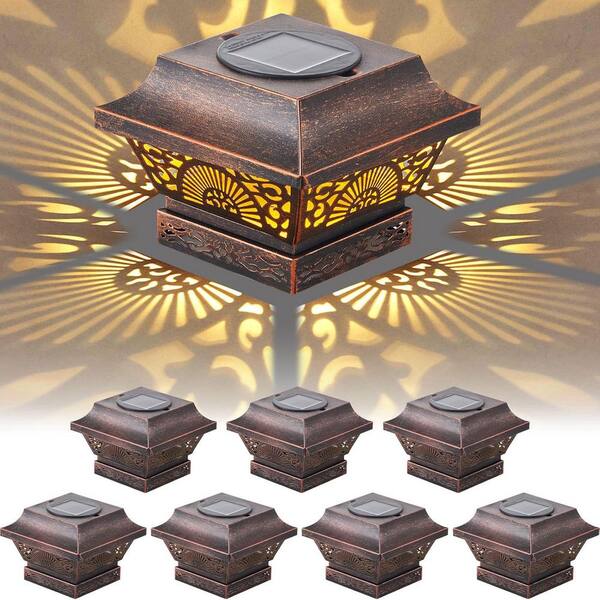 Solar Post Lights 8 Pieces Metal Decorative Post Cap Light with Waterproof Warm White LED Lighting