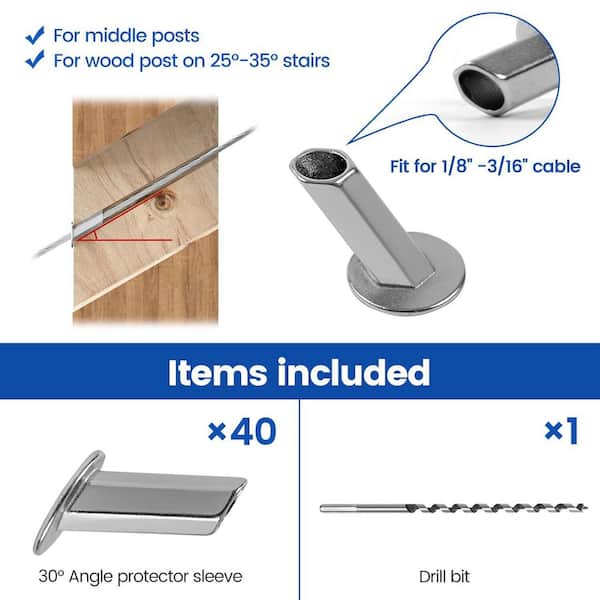 Stainless Steel Angle Protective Sleeves Deck Cable Railing Hardware Kit 40-Pack 25-30-35° 1/8 in.-3/16 in.