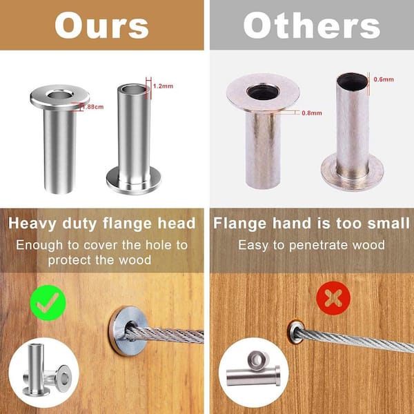 Stainless Steel Protector Sleeves for Cable Railing Systems with Drill Bit 50 Pack for 1/8 5/32 3/16 Cables