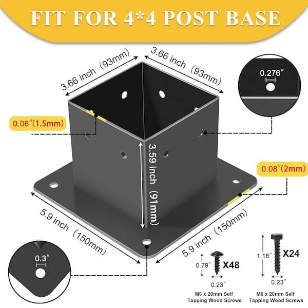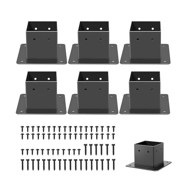 Steel Black Heavy Duty 4 x 4 Post Base Brackets Inner Size 3.5 x 3.5 for Wood Deck Porch Railing 6-Pack