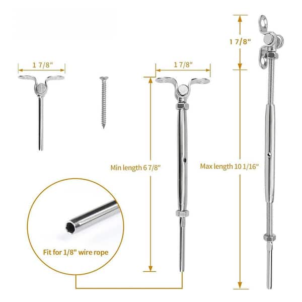 T316 Stainless Steel Cable Railing Kit 180° Adjustable Turnbuckle for Wood Post 20 Pairs 1/8 Swage Toggle