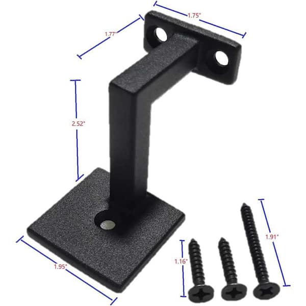 Textured Black Zinc Alloy Square Handrail Brackets for Staircase Railing with Contemporary Design (Pack of 5)