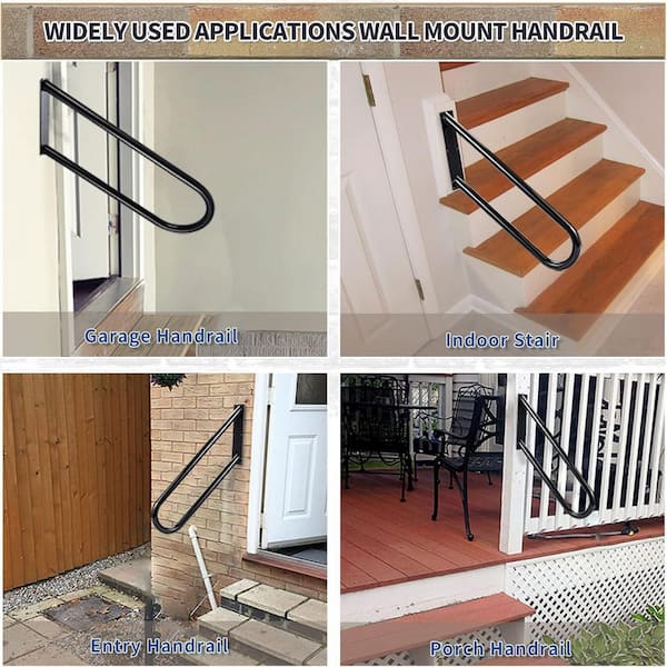 Wall Mounted Heavy-Duty U-Shape Stainless Steel Handrails for Indoor Outdoor Porch Steps Safety Grab Bar Black 27.5