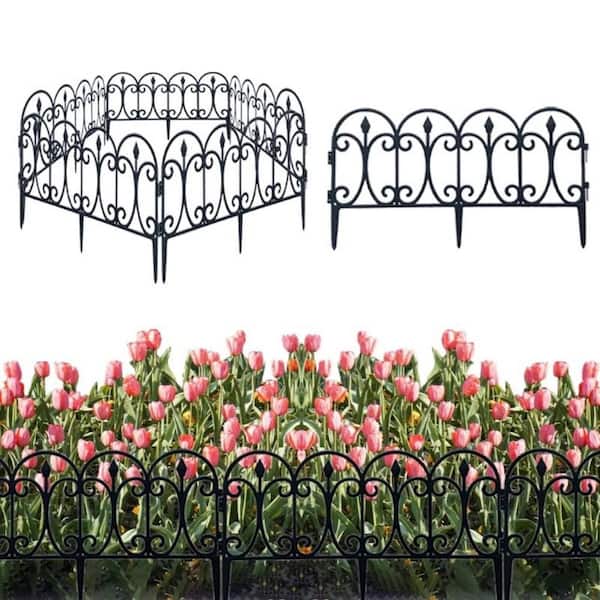 13 in. H x 23 in. W Garden Fence With Pickets Decorative Garden Yard Black 12 Pieces