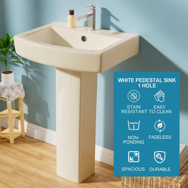 18 in. D x 22 in. W Pedestal Combo Bathroom Sink in Bone Vitreous China Rectangular Combo Pedestal Sink with Overflow