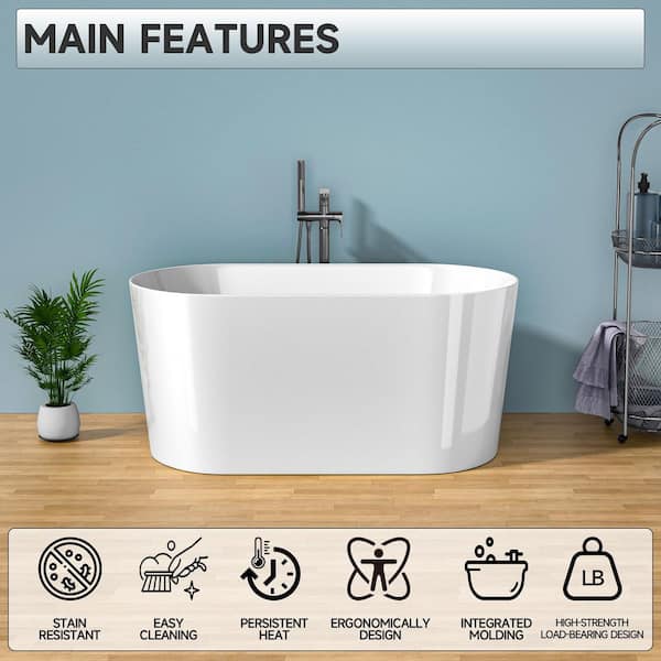 55 in. x 27.6 in. Acrylic Freestanding Soaking Bathtub White Oval Tub with Chrome Drain cUPC Certified Soaking Bathtub