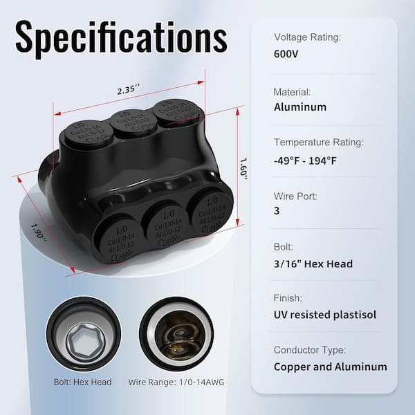 1/0-14 AWG Wire Range 3 Port Dual Entry Insulated Splice Multi Tap Connector with Slotted 3/16 in. Allen Hex, 6-Pack
