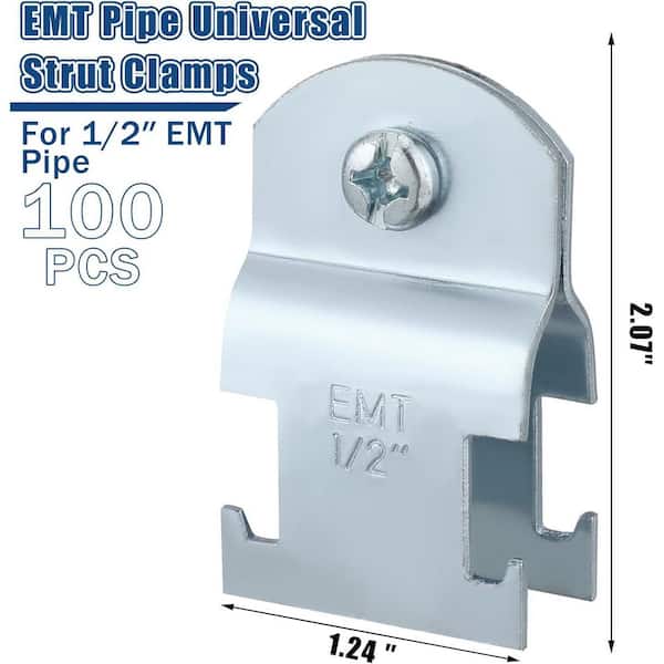1/2 in. Universal Strut Clamps for Strut Channel Accessory Electro Galvanized Rigid Pipe with Bolt and Nut, 100-Packs