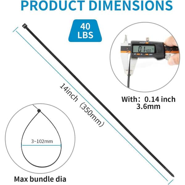 1200-Piece 14 in. UV Resistant Nylon Cable Zip Ties with 40lbs Tensile Strength for Indoor and Outdoor Use, White/Black