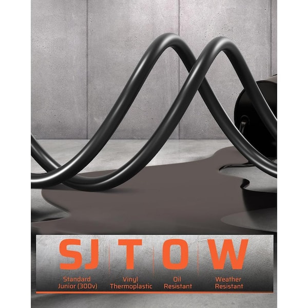 13 Amp 3-Outlet Grounded Retractable Extension Cord Reel with 50 ft. Heavy Duty Power Cord 14AWG/3C SJTOW in Black