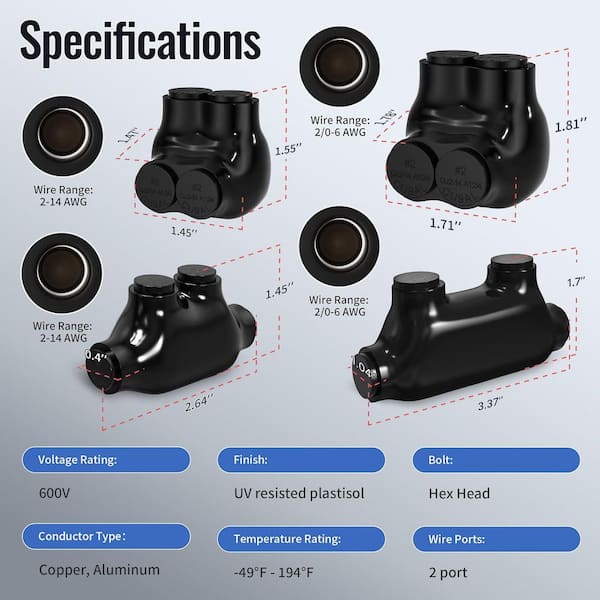 2-14 AWG and 2/0-6 AWG Wire Range 600-Volt Rating 2 Port Insulated Multi Splice Connector with Slotted Allen Hex, 6-Pack