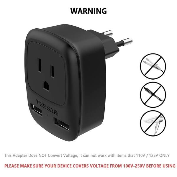 2.4 Amp. Travel Plug Adapter with 2 USB Ports, Type C Outlet Adapter Good for all Gadgets & other USB electronics-Black