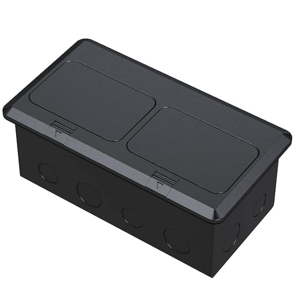 20 Amp 3-Port RJ45 Stainless Steel Dual Pop-Up Floor Electrical Outlet Box Kit GFCI TR Receptacle Outlet, Black