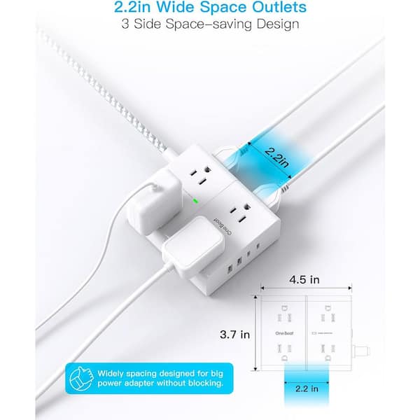 20' Flat Plug Surge Protector Power Strip, Long Extension Cord with 8 Widely AC Outlets and 4 USB Ports (2 USB-C), Black