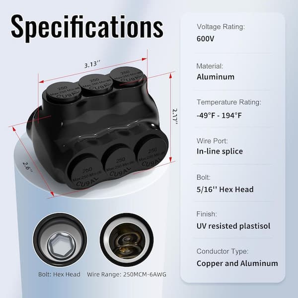 • Designed for 250MCM to 6AWG wire sizes