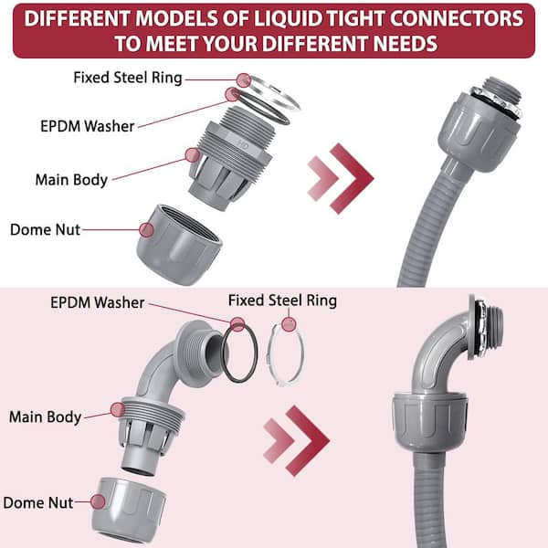 3/4 in. x 50 ft. Non-Metallic Flexible Electrical Conduit with 6 Straight and 3 Angle Fittings Conduit Connector Fitting