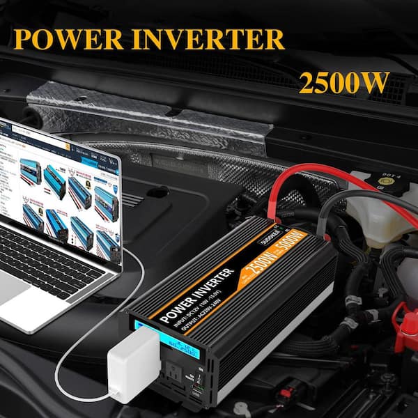 3-Outlet Power Strip Surge Protector 2500W Power Inverter DC to AC with Remote Control, USB Port & LED Display, Black