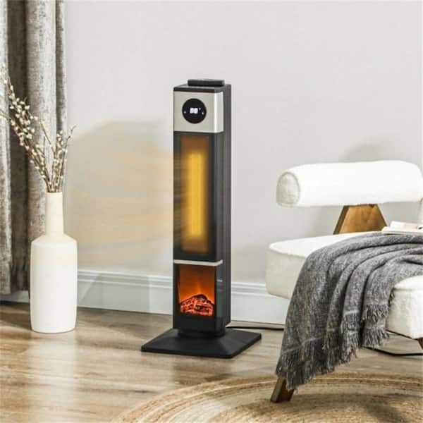 30.7in.H 1400 W Electric Indoor Tower Ceramic Fan Space Forced Air Heater with Tip Over Overheat Protection and 3D