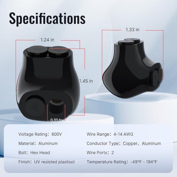 4-14 AWG Wire Range 2 Port Single-Sided Entry Insulated Splice Multi Tap Connector with Slotted Allen Hex (5-Pack)
